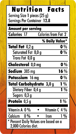 Achiote paste, orange juice, xantan gum, onion, vinegar, salt, garlic, black pepper, yeast extract and potassium sorbate.